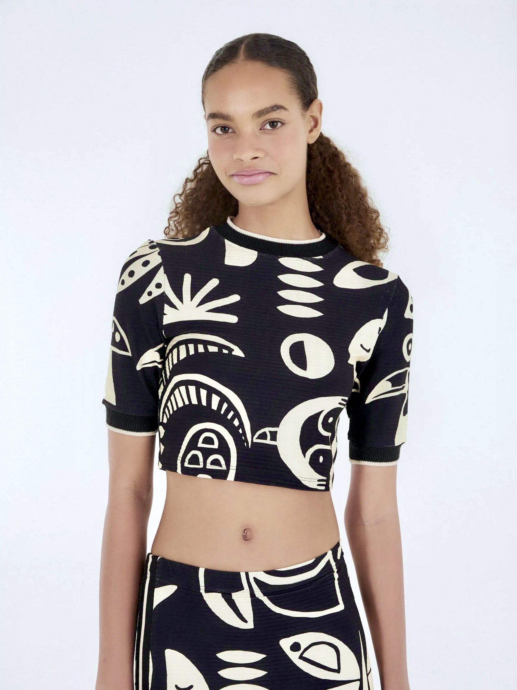 A Blusa Cropped Lenço Tropicano da Farm é confeccionada com tecido leve e modelagem justa. Essa peça traz mangas curtas e gola redonda, oferecendo praticidade e estilo. É perfeita para um visual casual, podendo ser combinada com jeans ou saias para um look despojado e charmoso em qualquer ocasião. Esta é uma peça Farm Rio Original - Alto Inverno 25!