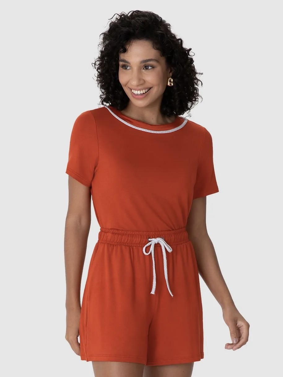 O Conjunto Moletinho da Malwee é composto por uma blusa com gola detalhada e shorts em moletinho de viscose. Oferece conforto e estilo para os dias mais descontraídos. Com toque macio e modelagem prática, é ideal para quem busca versatilidade aliada a um design moderno e delicado. É perfeito para momentos de lazer. Disponível nas cores preto e ferrugem. Garanta o seu agora!