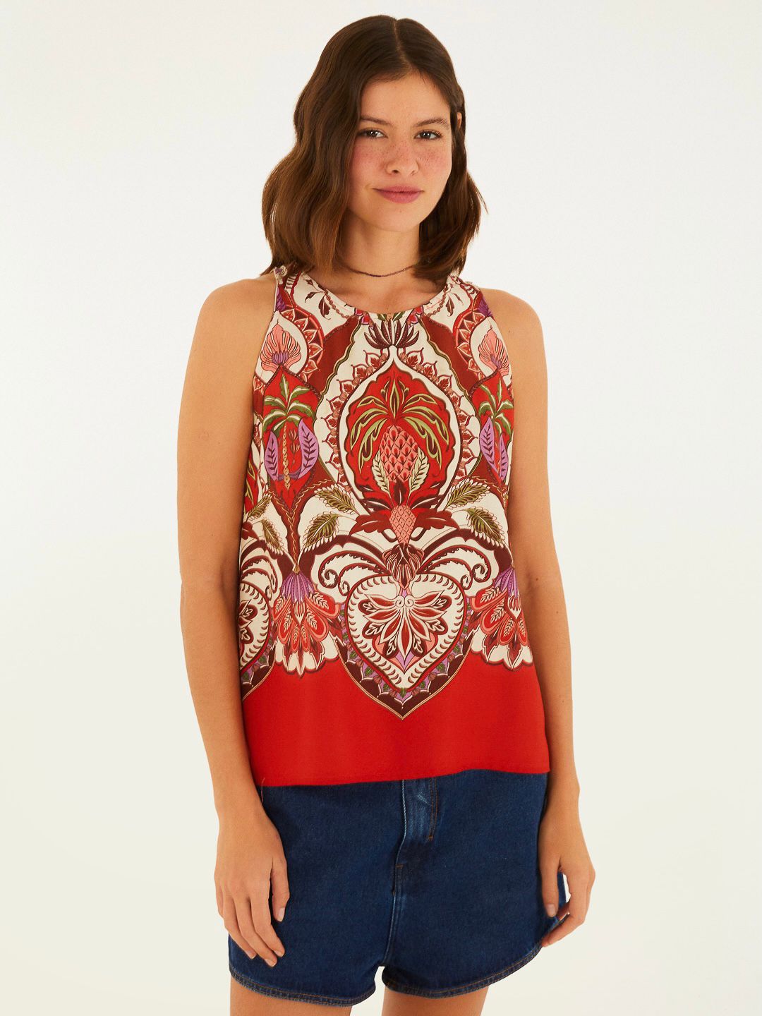 A Regata Odara da Farm traz frescor e originalidade em seu corte solto, com alças delicadas e decote arredondado. É perfeita para um visual casual, do passeio ao brunch. A combinação de cores e padronagem exclusiva eleva qualquer composição, conferindo um toque único ao seu guarda-roupa. Esta é uma peça Farm Rio Original - Verão 26!