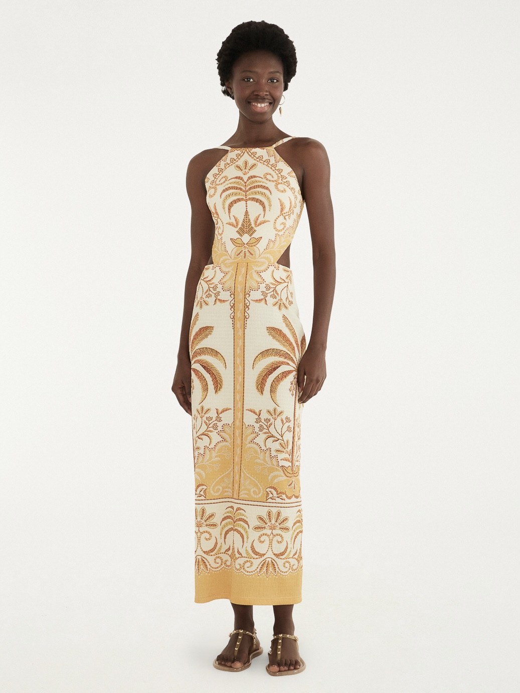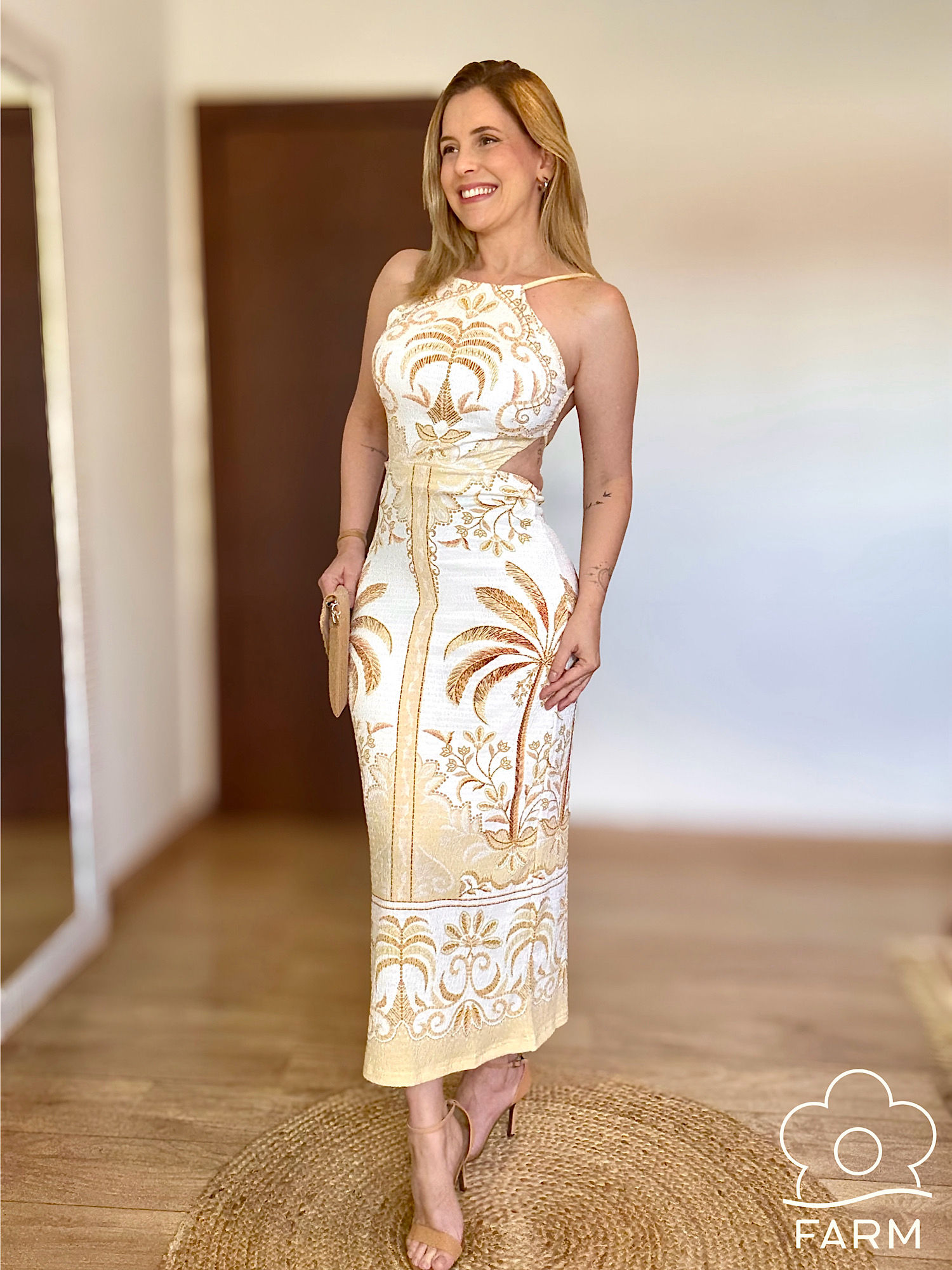 O Vestido Paisagem Tropical Import da Farm oferece decote reto com alças finas, garantindo frescor e estilo. A modelagem proporciona conforto, enquanto os acabamentos impecáveis refletem a originalidade da peça. É ideal para um passeio no parque ou um jantar casual. Esta é uma peça Farm Rio Original - Alto Verão 26!